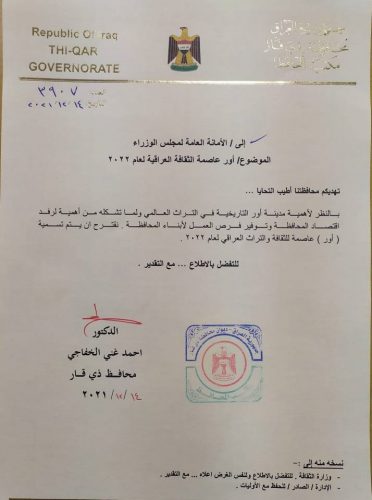 بالوثيقة : مقتراح بجعل اور عاصمة العراق الثقافية