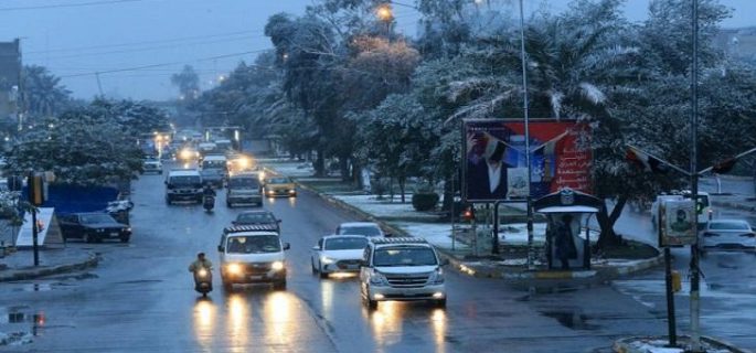 وبين التقرير ” ان يوم الجمعة الموافق 17/12/2021 يبدأ المنخفض الجوي بالانحسار تدريجيًا بعد الظهر متوجهًا نحو الشرق من البلاد ويبقى المنخفض مؤثرًا على تلك المناطق ( المناطق الحدودية الشرقية) ليومي السبت والأحد وتكون الامطار في تلك المناطق مابين خفيفة الى متوسطة الشدة وتتمركز شدتها على المناطق الشمالية الشرقية من البلاد وخاصة السليمانية مع حدوث عواصف رعدية فيها أحيانا، لذا ننوه بأن بأحتمال حدوث سيول في تلك المناطق.