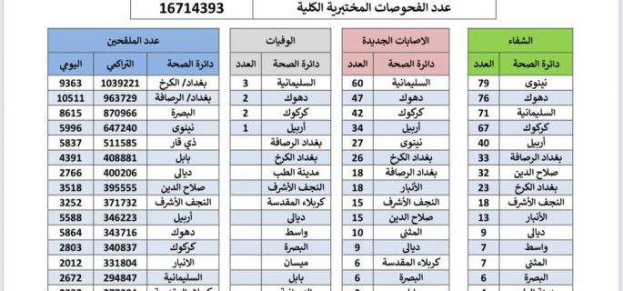 الصحة تسجل 342 اصابة جديدة بكورونا