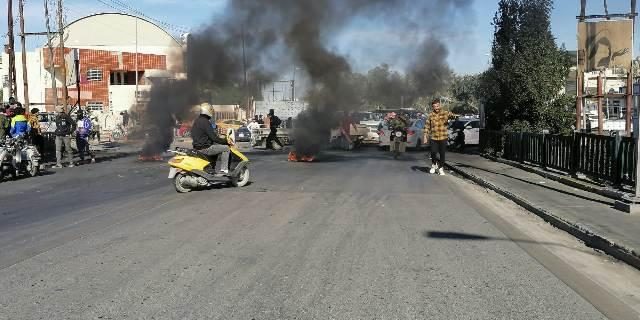 كما قطع المتظاهرون، اغلاق الطرق المؤدية لساحة الحبوبي وتقاطع البهو.
