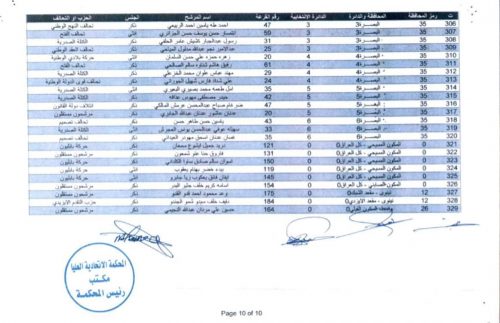 القائمة النهائية للفائزين بالانتخابات بعد مصادقة المحكمة الاتحادية عليها