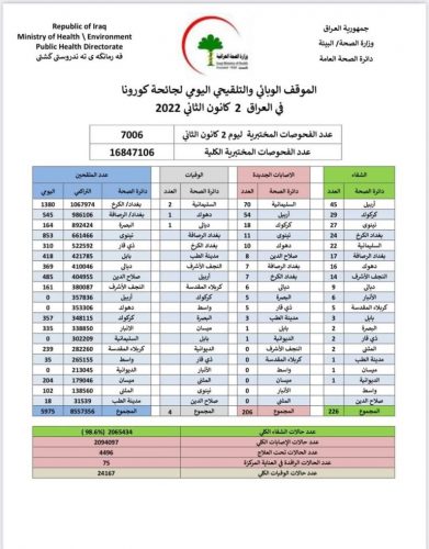 الصحة تسجل 206 إصابات جديدة بفيروس كورونا