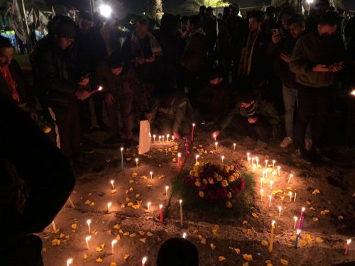 وافاد مصدر، بأن المواطنين تجمعوا بالقرب من مكان اغتيال نائب رئيس هيئة الحشد الشعبي ابو مهدي المهندس وقائد فيلق القدس قاسم سليماني، الذين استشهدا بغارة امريكية قبل عامين.