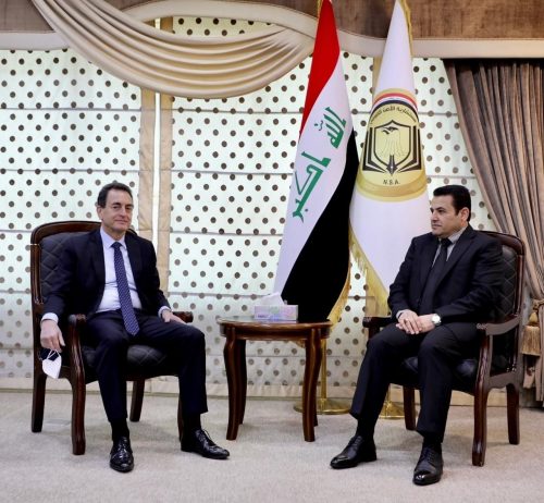 وذكر بيان لمكتب الاعرجي، ان”الاخير استقبل بمكتبه اليوم الإثنين، السفير الفرنسي في بغداد أريك شوفالييه وبحثا آخر مستجدات الأوضاع السياسية والأمنية في المنطقة، كما جرى استعراض العلاقات الثنائية بين بغداد وباريس وأهمية إكمال بناء المستشفى الفرنسي في قضاء سنجار، والتأكيد على أهمية تعزيز العلاقات الثنائية، بما يخدم مصالح البلدين والشعبين الصديقين”.