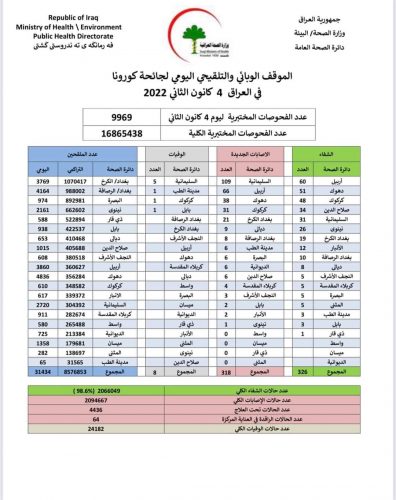 الصحة تسجل 318 اصابة جديدة بكورونا