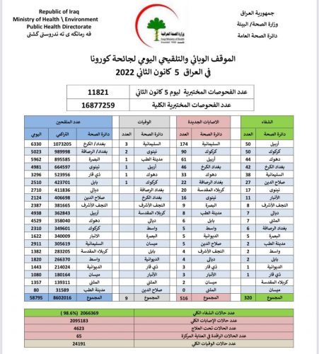 الصحة تسجل 516 اصابة جديدة بكورونا