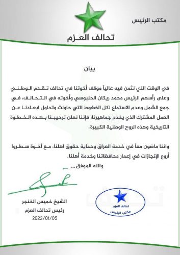 تحالف الخنجر يرد على دعوة الحلبوسي