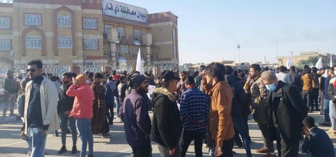 وأفاد مصدر في المحافظة بأن “عشرات الخريجين جددوا احتجاجاتهم امام مبنى ديوان محافظة ذي قار، للمطالبة بالتعيين وتوفير فرص عمل لهم”.