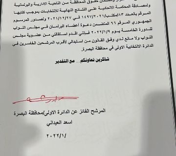 بالوثيقة : العيداني يقدم استقالته من عضوية البرلمان