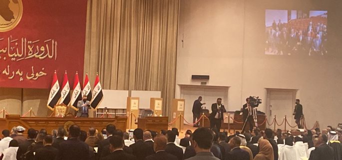 وشهدت الجلسة هتافات من كل الاطراف جزء يردد شعارات “عاشت تشرين” واخرين يرددون صلوات ونعم نعم للحشد واخرون “نعم نعم للاصلاح” واخرون رددوا هتافات للبيشمركة.انتهى