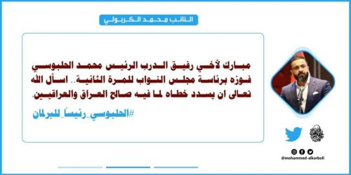 من جانبه بارك النائب السابق محمد الكربولي، فوز الحلبوسي: