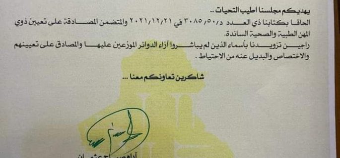 بالوثيقة : الخدمة الاتحادي يخاطب الصحة بشأن الذين تم تعيينهم من ذوي المهن الطبية