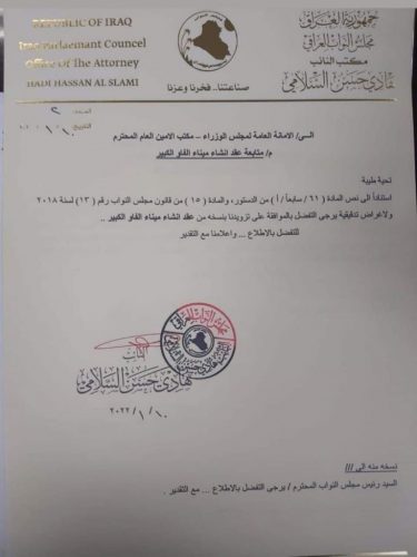 بالوثيقة.. أول تحرك نيابي على ميناء الفاو ومتابعة تطورات انجازه