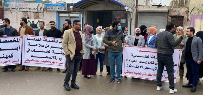 وقال مصدر بالمحافظة، ان “العشرات من مهندسي الاجهزة الطبية وطب الحياة في دائرة صحة ذي قار، نظموا وقفة احتجاجية امام مبنى الدائرة احتجاجا على حجب مخصصاتهم الهندسية، رغم شمولهم بقانون المخصصات الهندسية رقم 233 والصادر من مجلس الوزراء لسنة 2008 وبمقدار ما بين 35 الى 50% وحسب موقع العمل، حيث تم اصدار اعمام من قبل وزارة الصحة بهذا الخصوص وتم صرفها لهم بدءا من تموز 2008 “، على حد قولهم.