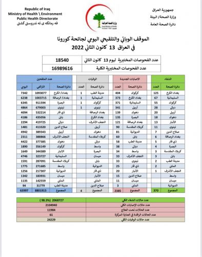 الصحة تسجل 2385 اصابة جديدة بكورونا