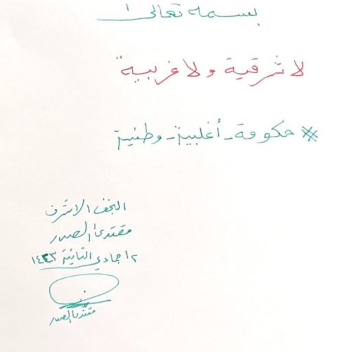 الصدر يجدد التأكيد: لا شرقية ولا غربية حكومة أغلبية وطنية