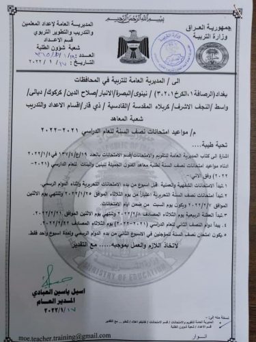 بالوثيقة.. مواعيد امتحانات نصف السنة وبداية العطلة الربيعية
