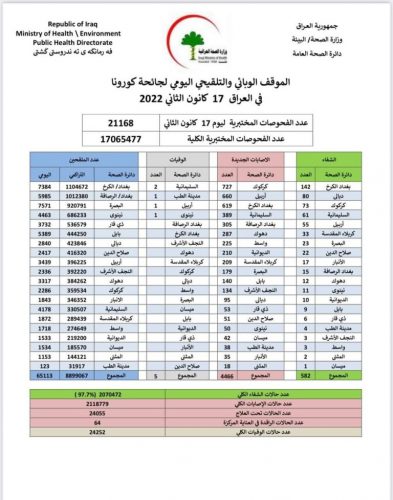 الصحة تسجل 4466 اصابة جديدة بكورونا