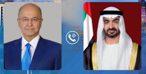 هاتف رئيس الجمهورية برهم صالح، ولي عهد أبو ظبي نائب القائد الأعلى للقوات المسلحة محمد بن زايد.