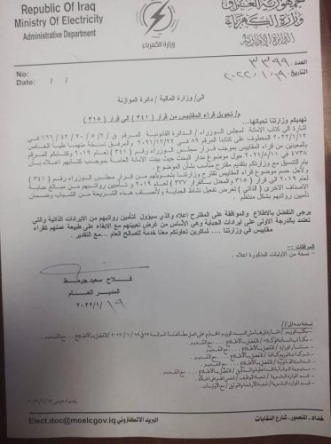بالوثيقة.. الكهرباء تبين إجراءاتها لتحويل قراء المقاييس إلى قرار 315