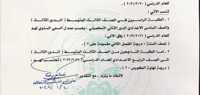 بالوثيقة.. التربية تصدر توجيها يخص طلبة الثالث متوسط والسادس الاعدادي