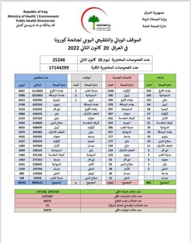 الصحة تسجل 5767 اصابة جديدة بكورونا