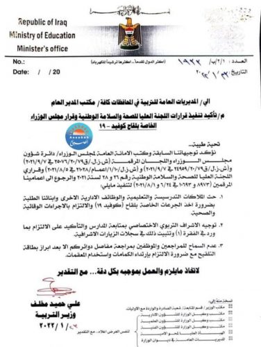 بالوثيقة… 3 توجيهات جديدة من التربية بشأن كورونا