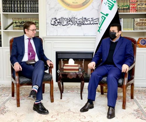 استقبل مستشار الأمن القومي قاسم الأعرجي، كبير مانحي البرامج الخاصة بالسلام ودعم الاستقرار ومدير برامج ابتكارات السلام في المعهد الأوربي للسلام بول سيلز والوفد المرافق له.