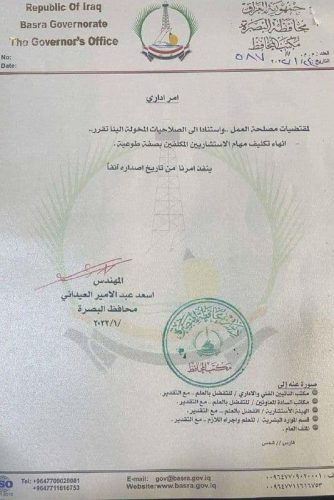 بالوثيقة.. محافظ البصرة ينهي تكليف الاستشاريين
