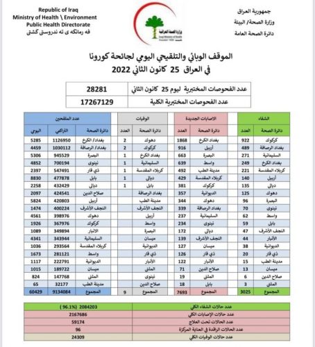 الصحة تسجل 7693 مصاباً خلال 24 ساعة