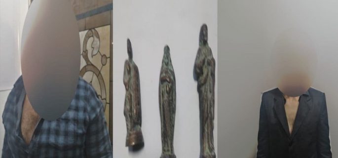 وذكر بيان لوزارة الداخلية تلقت *الرأي* الدولية نسخه منه أن “مفارز استخبارات اللواء الخامس عشر التابعة لوكالة الاستخبارات والتحقيقات الاتحادية وبالتعاون مع مفارز مديرية مكافحة الجريمة المنظمة قسم الآثار، تمكنت من القبض على اثنين من المتهمين بالجرم المشهود بعد ان عثر بحوزتهما على 3 قطع اثرية”.