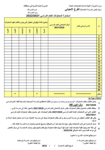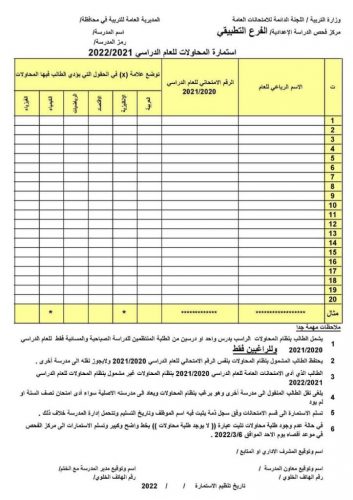 بالوثيقة : التربية تنشر استمارات نظام المحاولات للصف السادس الاعدادي