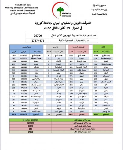 الصحة تسجل 5827 اصابة جديدة بكورونا