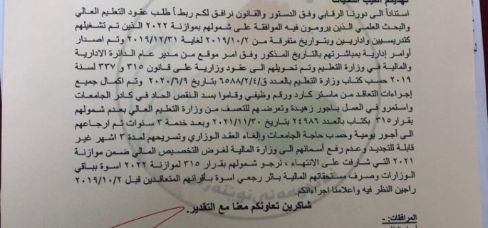 بالوثيقة.. طلب نيابي باستثناء وشمول عقود التعليم العالي بموازنة ٢٠٢٢