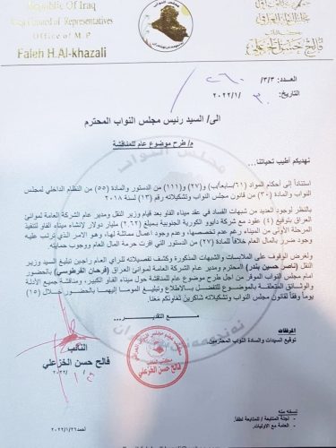 بالوثيقة.. جمع تواقيع نيابية لبحث شبهات الفساد المحيطة بمشروع ميناء الفاو الكبير