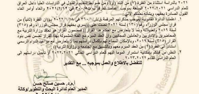 بالوثيقة : التعليم العالي توافق على تقديم موظفي العقود للدراسات العليا