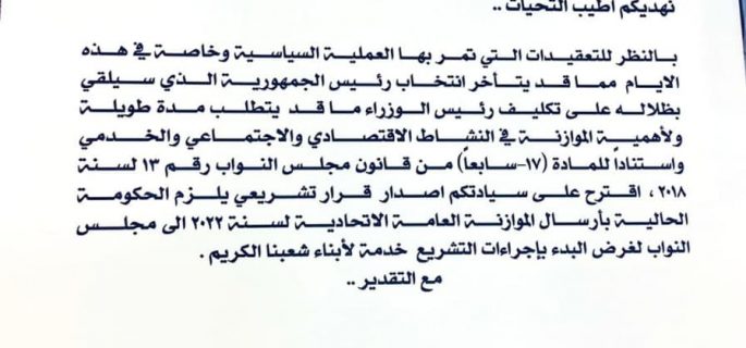 بالوثيقة… اقتراح نيابي بالزام الحكومة لارسال موازنة 2022