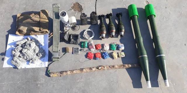 وأضاف البيان، أن الكدس يحتوي على: قنبرة هاون عيار ٦٠ ملم عدد/٣ جديد، صاروخ SPG9 عدد / ٢ جديد، مسطرة تفجير عدد/ ١ مستهلكة، دائرة كهربائية حجم صغير عدد/ ١١، جهاز مناداة نوع موترلا عدد/١، جهاز مناداة نوع كينود عدد/١، شاحنة جهاز كينود عدد/١، كاميرات نوع سامسونك عدد/٢، مادة C4نصف كيلو داخل حقيبة نسيجية، فتيل تفجير بطول نصف متر، بطارية موبايل سامسونك عدد/١ مستهلكة، بطارية جافة عدد/١ مستهلكة، نطاق عسكري عدد/١”.