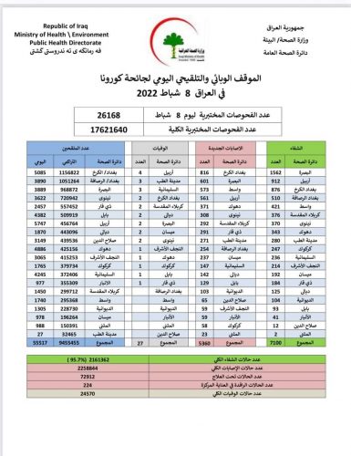 الصحة تسجل 5360 إصابة جديدة بكورونا