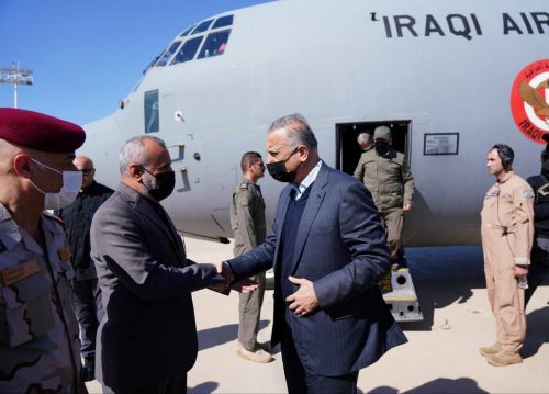 وأضاف البيان، أن “وزيري الدفاع والداخلية، وعدداً من قيادات الأجهزة الأمنية رافقوا الكاظمي”. انتهى