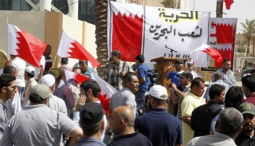 ودان المتظاهرون ممارسات نظام المنامة ضد الشعب البحريني.انتهى