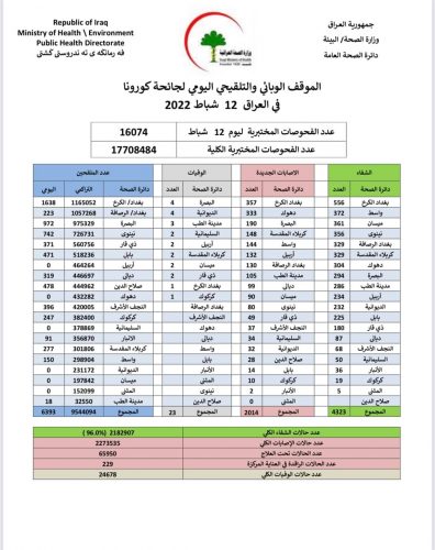 الصحة تسجل 2014 اصابة جديدة بكورونا