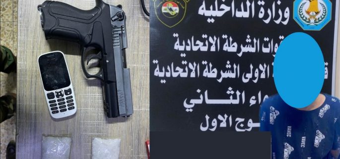 واضاف البيان أنه وفي السياق ذاته “تمكنت قوة من الفوج الاول اللواء الثاني الفرقة الأولى شرطة اتحادية بالاشتراك مع مفارز استخبارات اللواء التابعة لوكالة الاستخبارات والتحقيقات الاتحادية من القبض على متهم بمتاجرة وتعاطي المواد المخدرة في منطقة (الاستكشافات النفطية) ببغداد وبحوزته 40 غرام من مادة الكرستال المخدرة ومسدس”.