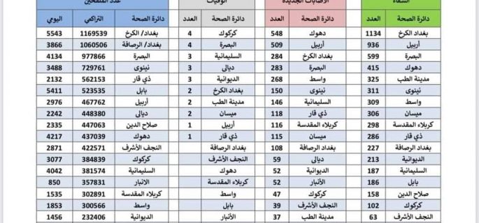 الصحة تسجل 3011 إصابة جديدة بكورونا