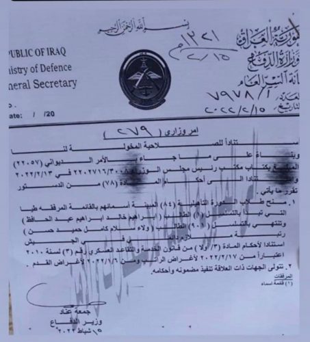 بالوثيقة: الدفاع تمنح طلاب الدورة 84 رتبة “ملازم دائم” في الجيش العراقي