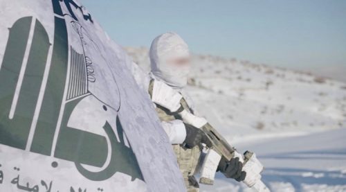 انتشر على مواقع التواصل الاجتماعي، اليوم الأربعاء، فيديو مصور يظهر فيه مجموعة من عناصر حزب الله يحملون العلمين اللبناني وحزب الله، فيما يجرون تدريبات على الثلوج.