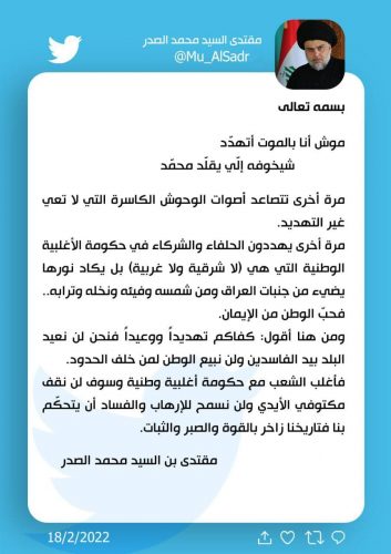 مقتدى الصدر: كفاكم تهديداً ووعيداً فنحن لن نعيد البلد بيد الفاسدين