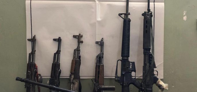 واضافت، انه”لدى المداهمة والتفتيش تم ضبط سلاح نوع ( BKC ) عدد (١) وبندقية نوع ( M16) عدد (١) وبندقية نوع (GC) عدد (١) وبنادق كلاشنكوف عدد (٤) ومخازن عتاد عدد (١٢) وبداخلها عتاد من نوعها عدد(١٥٤) إطلاقة”.