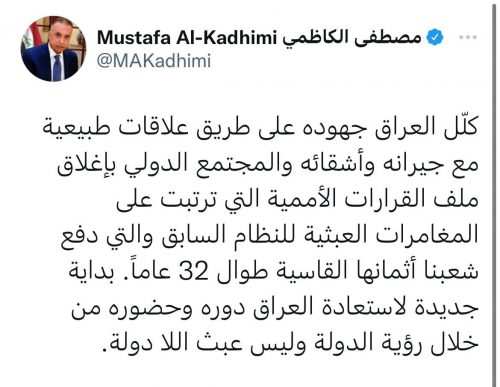 الكاظمي يغرد: بداية جديدة لاستعادة العراق دوره وحضوره