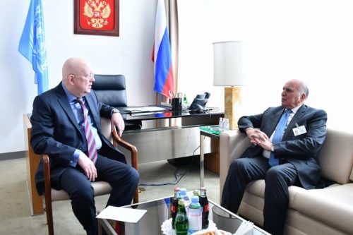 التقى وزير الخارجيَّة فؤاد حسين مع المندوب الدائم لروسيا الاتحادية لدى الأمم المتحدة فاسيلي نيبينزيا رئيس مجلس الأمن الدوري لشهر شباط 2022، في مقر الأمم المتحدة في نيويورك.